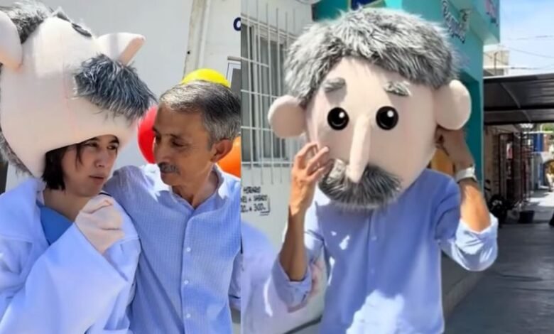 A lo ‘Simi’: Hija sorprende a su papá médico con una botarga de él mismo para celebrar su cumpleaños | VIDEO