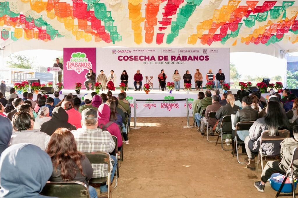 Jara Cruz recordó que esta actividad se remonta al siglo XIX, cuando el ingenio de las y los comerciantes transformó un producto de campo en expresión cultural, dando origen a la Noche de Rábanos, que ahora, no sería posible sin el esfuerzo institucional previo: preparación de la tierra, siembra escalonada y cuidado del cultivo.