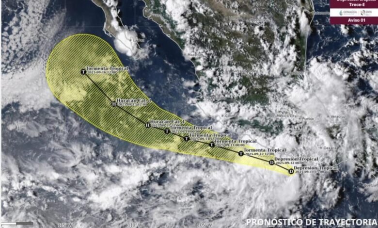 La Coordinación Estatal de Protección Civil y Gestión de Riesgos (CEPCyGR) advierte sobre evento de mar de fondo, con oleaje elevado y fuertes corrientes de resaca a lo largo de todo el litoral oaxaqueño, ante la formación de la depresión tropical Trece-E al sur de las costas de Oaxaca y Guerrero.