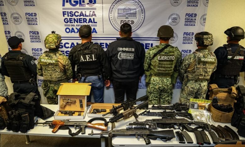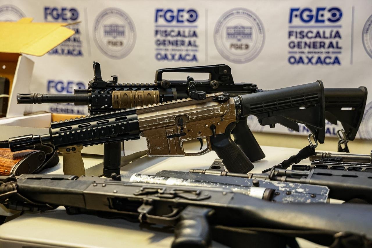 En el inmueble intervenido, localizado en Tlalixtac de Cabrera, los agentes investigadores y peritos especializados, junto con elementos de la Secretaría de la Defensa Nacional (Defensamx), Secretaría de Marina, Guardia Nacional y Policía Estatal SSPC Oaxaca, aseguraron un arsenal que incluye armas largas de grueso calibre tipo AK-47 y AR-15, así como pistolas tipo Glock (calibre 9 mm) y una TH380.