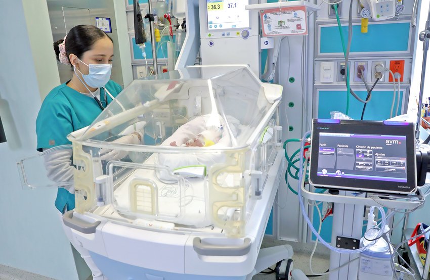Detalló que en el hospital se cuenta con tecnología de vanguardia en la Unidad de Cuidados Intensivos con 20 lugares especialistas en Neurología, Cardiología, Cirugía Pediátrica, médicos neonatólogos y pediatras, personal capacitado en ultrasonido transfontanelar (cerebral), cardíaco y pulmonar, servicio de Radiología, así como personal de enfermería competente y calificado para el manejo de bebes pretérmino.