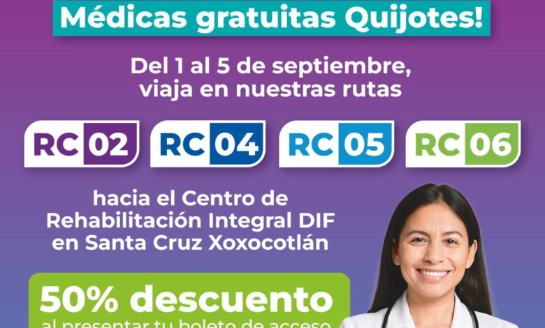 Oaxaca de Juárez, Oax. 29 de agosto de 2025.- Para coadyuvar en la atención médica de la población oaxaqueña, el Sistema de Transporte Colectivo Metropolitano BinniBus Oaxaca ofrecerá el 50 por ciento de descuento a las personas usuarias que acudan a la 27 edición de las Jornadas Médicas Gratuitas “Quijotes”.