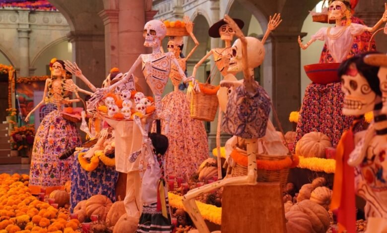 Las protagonistas, fueron las calaveras hechas de papel maché en diversos tamaños, las cuales representaron las ocho regiones de Oaxaca y manifestaron lo viva y alegres que son las tradiciones de las comunidades de la entidad.