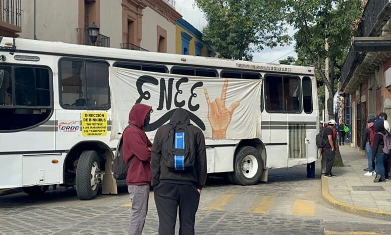 Esta mañana un grupo de normalistas bloquean algunas calles en el centro de la Ciudad de Oaxaca.