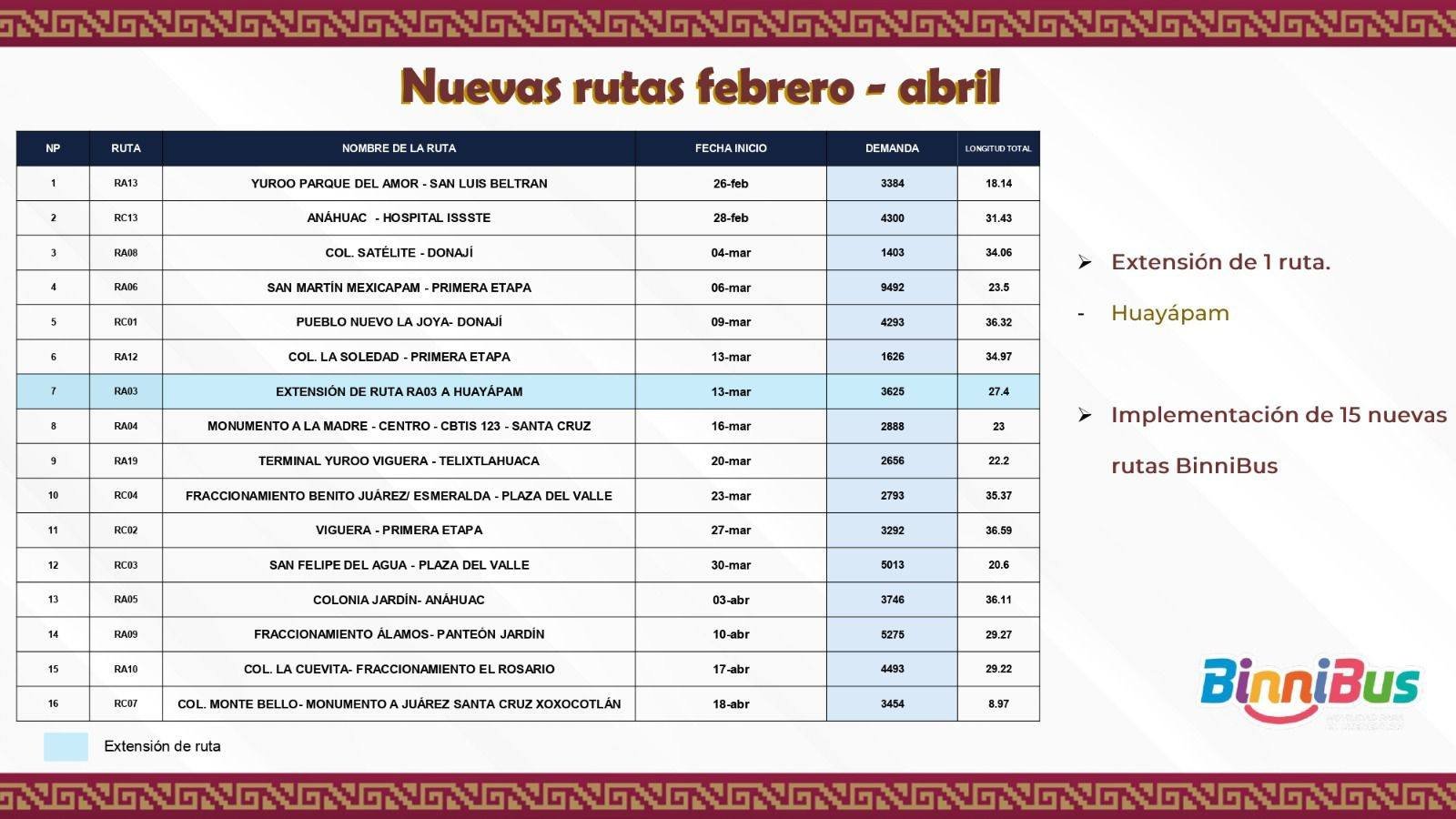 En conferencia de prensa, el Mandatario estatal comunicó que estos 15 nuevos trayectos serán implementados a partir de esta semana hasta mediados de abril, dentro de la cuales se contempla la ampliación del recorrido RA03 “Ladxidó” Parque del Amor-Huayápam.