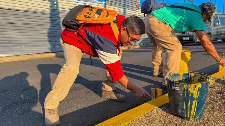 Durante la jornada se llevaron a cabo acciones de limpieza integral y mejoramiento de la imagen urbana, entre ellas la limpieza del camellón central, barrido general de la avenida, pintura de fachadas, pintura de pasos viales y trabajos de pintura de guarniciones.