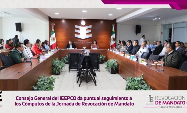 Este lunes, el Consejo General del Instituto Estatal Electoral y de Participación Ciudadana de Oaxaca (IEEPCO) continuó con la Sesión de Seguimiento al Desarrollo de los Cómputos de la Jornada de Revocación de Mandato, informando un avance del 90.37 % en la captura de actas, así como una participación ciudadana del 29.92 %, con corte al momento del informe.