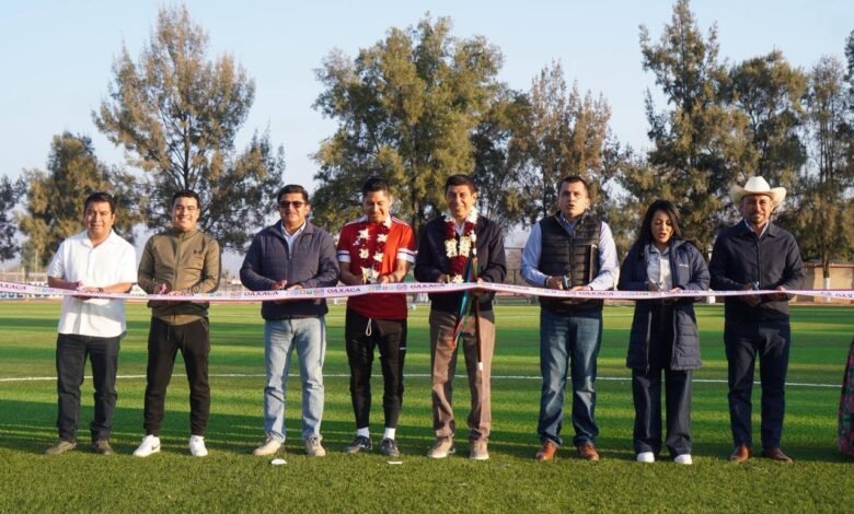 Cumple Salomón Jara en Miahuatlán; entrega cancha de futbol 11 rehabilitada para desarrollo de niñez y adolescencia en ambiente de paz