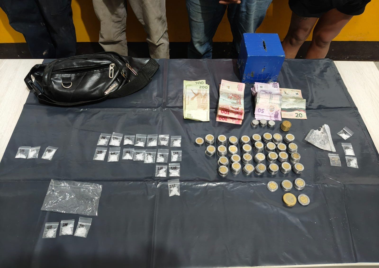 Durante la intervención, las autoridades aseguraron diversas bolsas con una sustancia sólida blanquecina, presumiblemente “cristal”, así como dinero en efectivo y dos motocicletas marca Italika, una de ellas con placas de circulación del estado de Puebla y otra sin placas.