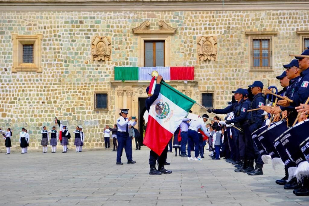 Como parte de la ceremonia, se realizó el desfile de banderas que fueron entregadas para su resguardo en el Salón de Cabildo “Porfirio Díaz Mori”, donde permanecerán hasta el inicio de la Marcha Patriótica. Este recorrido partirá esta noche desde el Palacio Municipal hacia Palacio de Gobierno, donde el gobernador del estado, Salomón Jara Cruz, encabezará el tradicional Grito de Independencia.