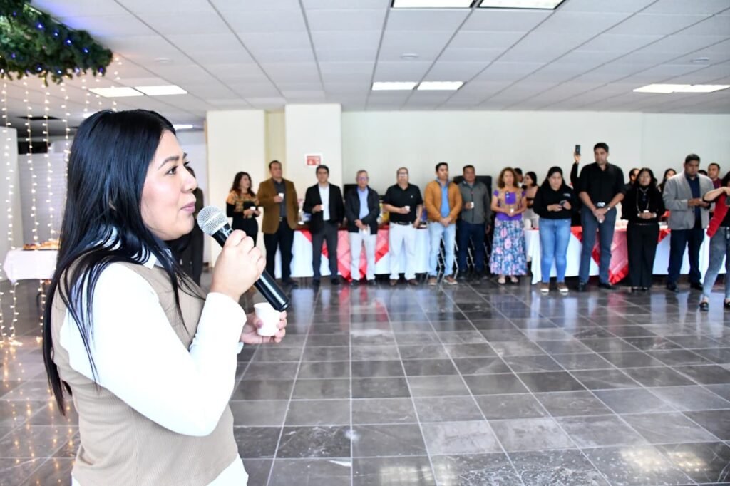 San Raymundo Jalpan, Oax., a 15 de diciembre de 2025.- En un ambiente de cercanía, alegría y espíritu navideño, la presidenta de la Junta de Coordinación Política (Jucopo), diputada Tania Caballero Navarro, presidió el tradicional brindis de Navidad y Fin de Año de las y los trabajadores del Congreso del Estado, como una muestra de reconocimiento, gratitud y aprecio.