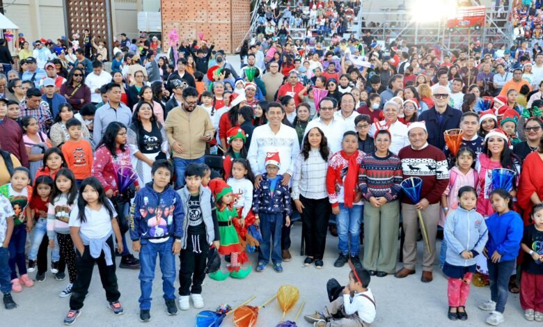 Oaxaca de Juárez, Oax. 22 de diciembre de 2025.- En un ambiente de alegría, luces y tradición navideña, la Presidenta Honoraria del Sistema para el Desarrollo Integral de la Familia (DIF) Oaxaca, Irma Bolaños Quijano y el Gobernador Salomón Jara Cruz, encabezaron la Diverti Posada; un evento dirigido a la niñez que reunió a cientos de familias en el Parque Primavera Cho Ndobá.