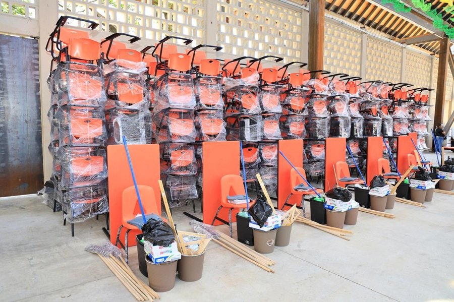 Oaxaca de Juárez, Oax. 22 de septiembre de 2025.- El Gobernador Salomón Jara Cruz entregó mobiliario a 102 escuelas de educación básica de Valles Centrales, en beneficio de 41 mil 816 estudiantes y 2 mil 400 docentes que podrán hacer uso de sillas y mesas nuevas; con una inversión de 13.1 millones de pesos.