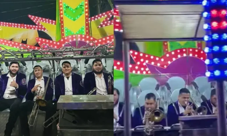 Mientras tú gritas, ellos tocan los instrumentos; un grupo de banda causó revuelo en redes sociales tras subirse a un juego mecánico a tocar en vivo
