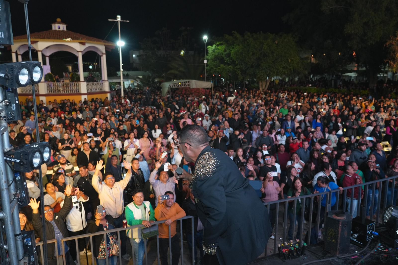 Santa Cruz Xoxocotlán, Oax., 3 de marzo de 2026.- En un Parque Central de esta ciudad abarrotado, miles de parejas bailaron y disfrutaron del segundo Martes de Brujas en una noche espectacular donde la tradición y la música se fundieron con el ritmo inconfundible de Los Ángeles de Charly y la energía de Hugo y Diego, El Legado, quienes imprimieron su sello a una velada memorable.