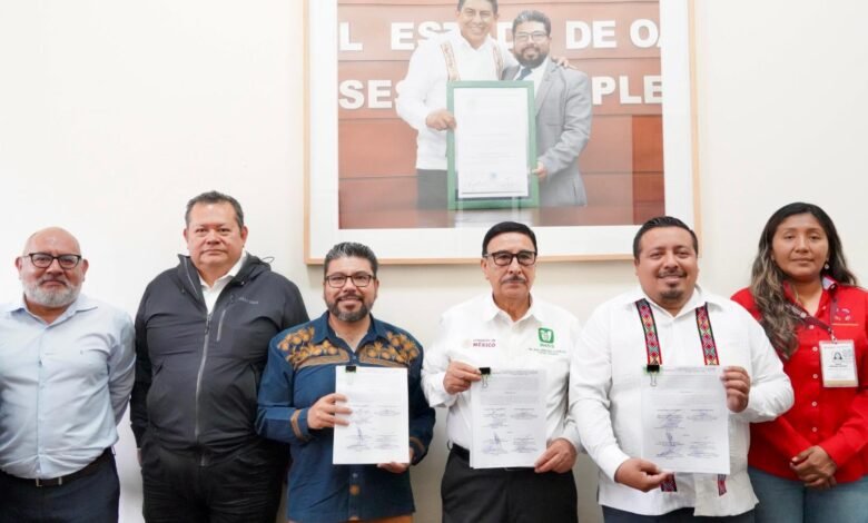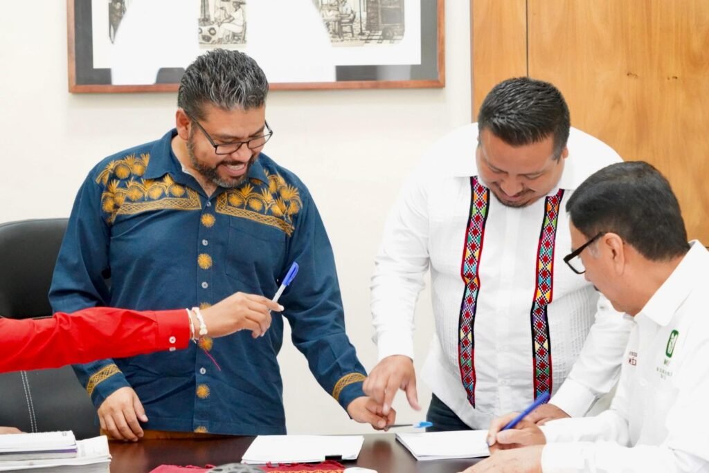 Oaxaca de Juárez, Oax. 11 de junio de 2025.- Los titulares de la Consejería Jurídica y Asistencia Legal del Gobierno de Oaxaca, Geovany Vásquez Sagrero y de la Secretaría de Administración, Noel Hernández Rito; firmaron, en representación del Estado, el Acta Administrativa de entrega-recepción del polígono ubicado en la agencia municipal de Guadalupe Hidalgo, San Lorenzo Cacaotepec, donde se construirá Ciudad Salud.