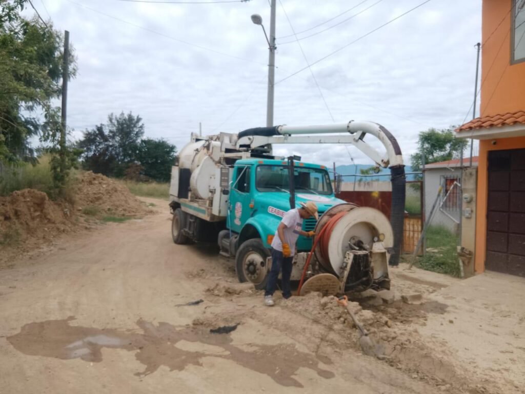 Oaxaca de Juárez, Oax. 13 de septiembre de 2025. La Comisión Estatal del Agua para el Bienestar (Ceabien) realizó trabajos de limpieza y desazolve de la red de alcantarillado sanitario en la calle Lachatao, ubicada en el fraccionamiento Reyes Mantecón, perteneciente al municipio de San Bartolo Coyotepec.