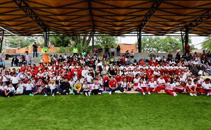 La felicidad se prolongó al conocer a Tachí, el guardián de los derechos de niñas y niños, quien les motivó a brincar y hacer uso de su voz al expresar lo que piensan o les interesa.