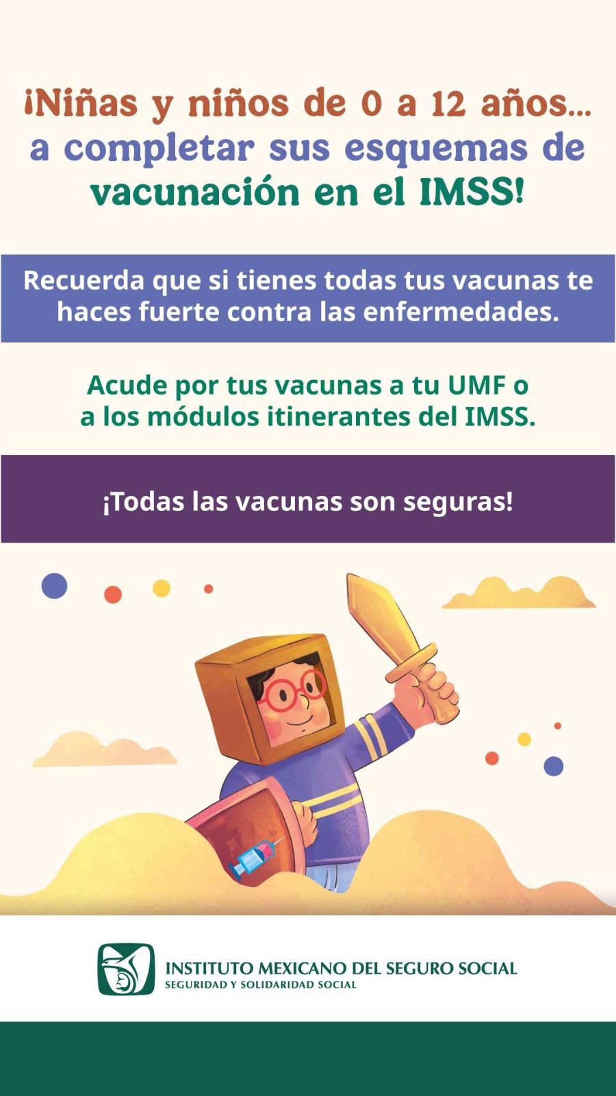 El Instituto recordó que la vacuna triple viral, que protege contra sarampión, rubéola y parotiditis, es segura, gratuita y se encuentra disponible en las unidades médicas del IMSS. Por ello, se invita a madres, padres y tutores a revisar la Cartilla Nacional de Salud de niñas y niños, y acudir a su unidad médica correspondiente para completar los esquemas de vacunación.