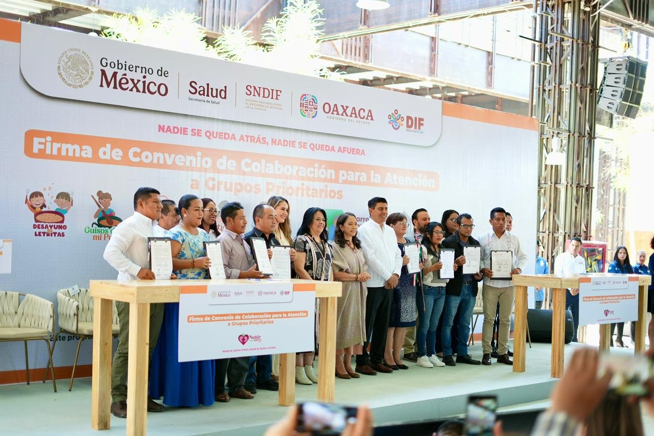 Santa Lucía del Camino, Oax. 27 de abril de 2026.- El Gobierno del Estado, a través del Sistema Estatal para el Desarrollo Integral de la Familia (DIF) Oaxaca, signó un convenio de colaboración para la Atención a Grupos Prioritarios con 539 municipios de la entidad, en materia de alimentación y desarrollo comunitario a estos sectores de la población.