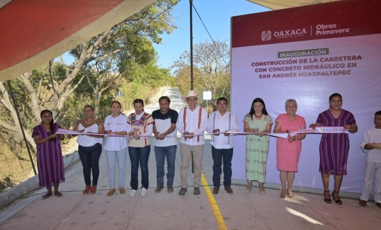 Inaugura Gobernador Salomón Jara caminos con concreto hidráulico en San Miguel Tlacamama y San Andrés Huaxpaltepec