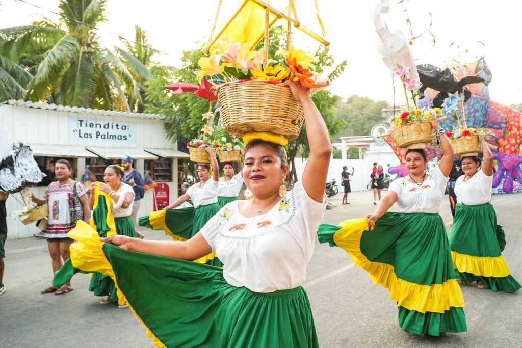 El júbilo de una calenda con la delegación de San Pedro Pochutla y los grupos de canasteras de Chacalapa, Mazunte y Tonameca; marionetas de animales marinos y banda de música dio paso a la inauguración de este encuentro.