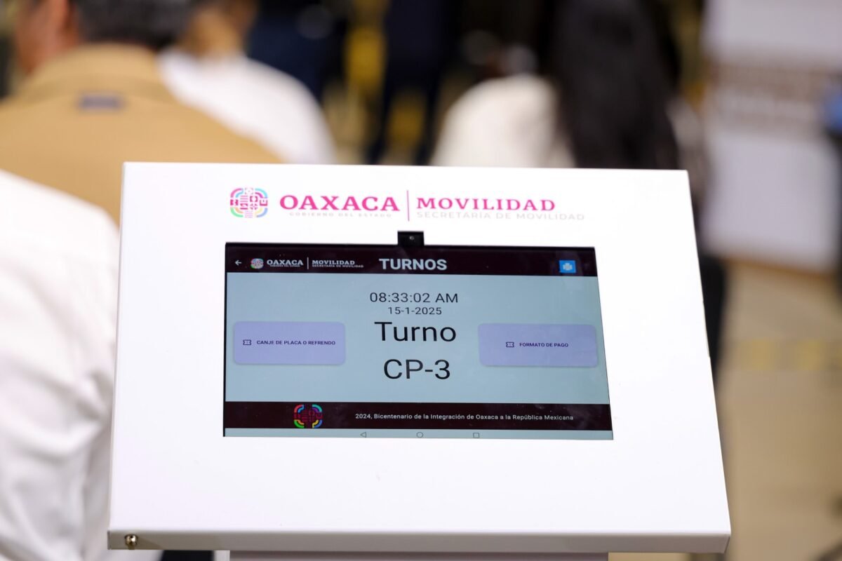En este esfuerzo conjunto entre las secretarías de Movilidad (Semovi) y de Finanzas (Sefin), el Mandatario estatal, acompañado por la Presidenta Honoraria del Sistema para el Desarrollo Integral de la Familia (DIF) Oaxaca, Irma Bolaños Quijano; precisó que en este espacio las personas usuarias realizarán trámites de emplacamiento y canje de tarjetas de circulación correspondientes a este año, a través de un sistema de turnos para agilizar la atención.