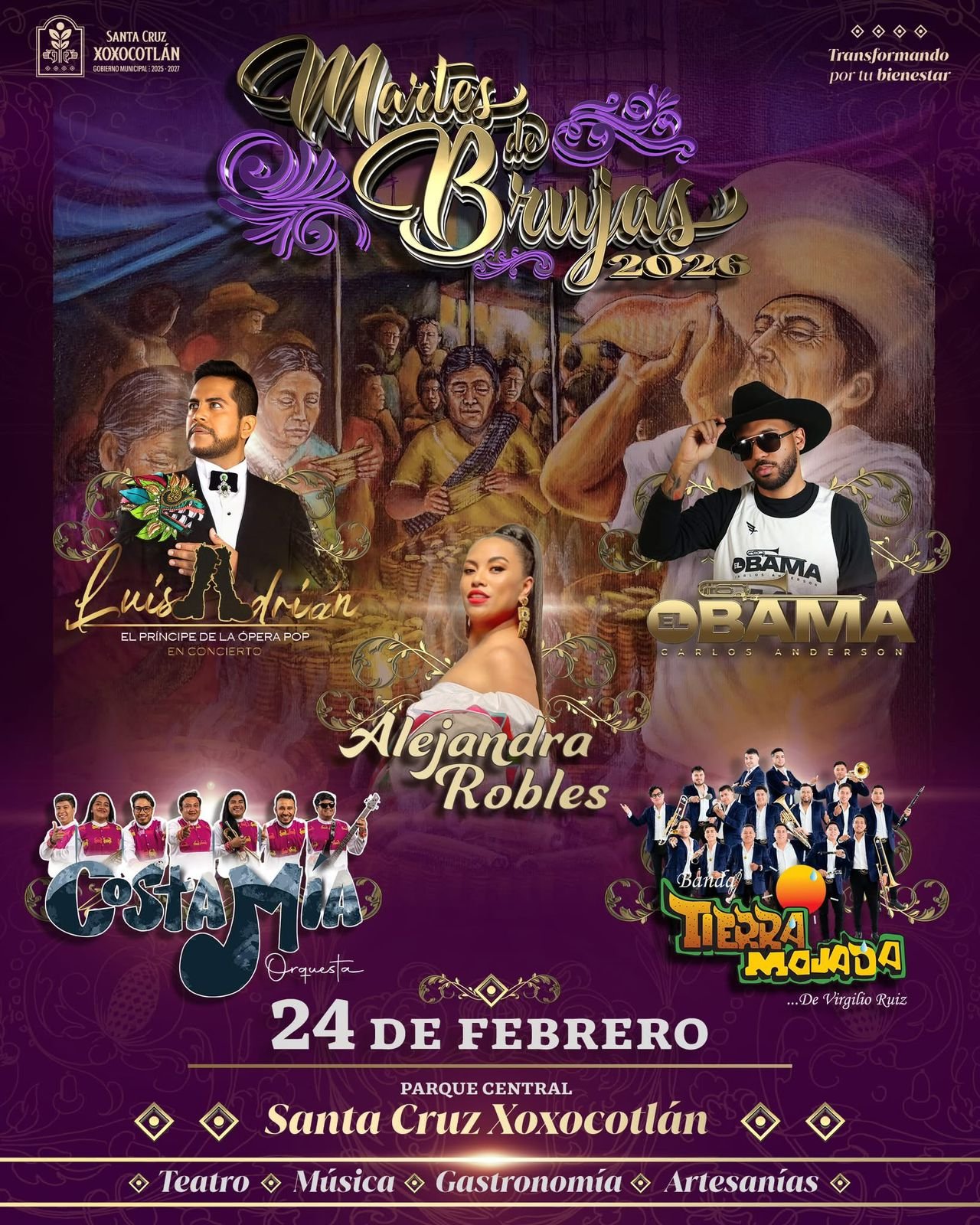 Santa Cruz Xoxocotlán, Oax., 17 de feb.– El Gobierno Municipal de Santa Cruz Xoxocotlán, encabezado por Nancy Benítez Zárate, invita a las familias xoxeñas, así como al turismo local, nacional e internacional, a ser parte de la máxima tradición de la comunidad: los Martes de Brujas 2026 que inician el próximo martes 24 de este mes.