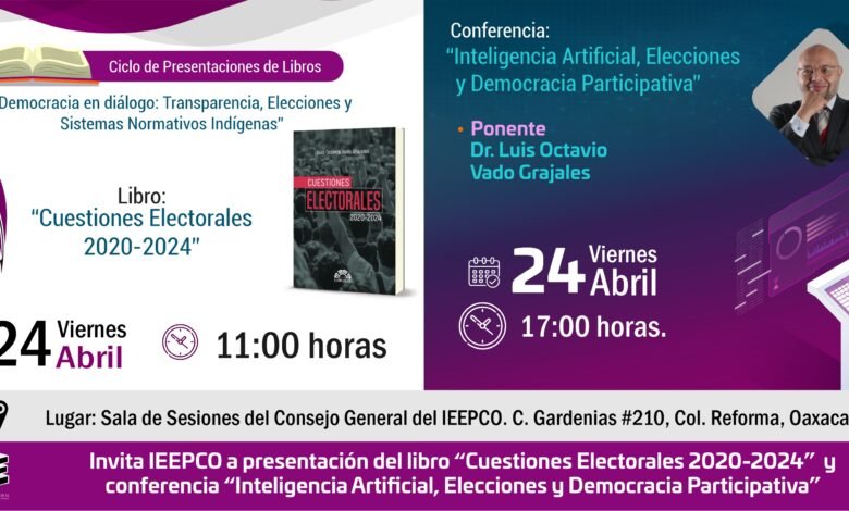 Invita IEEPCO a presentación del libro “Cuestiones Electorales 2020-2024” y conferencia “Inteligencia Artificial, Elecciones y Democracia Participativa”