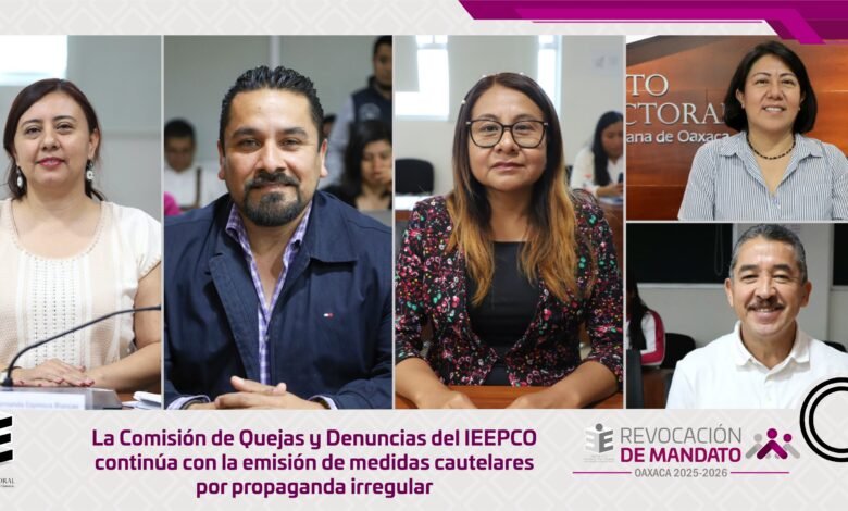 La Comisión de Quejas y Denuncias del Instituto Estatal Electoral y de Participación Ciudadana de Oaxaca (IEEPCO) celebró este sábado una sesión extraordinaria urgente, en la cual aprobó una nueva serie de medidas cautelares para ordenar el retiro inmediato de propaganda irregular detectada en distintos municipios del estado, relacionada con el Proceso de Revocación de Mandato de la persona titular del Poder Ejecutivo del Estado para el periodo 2022–2028.