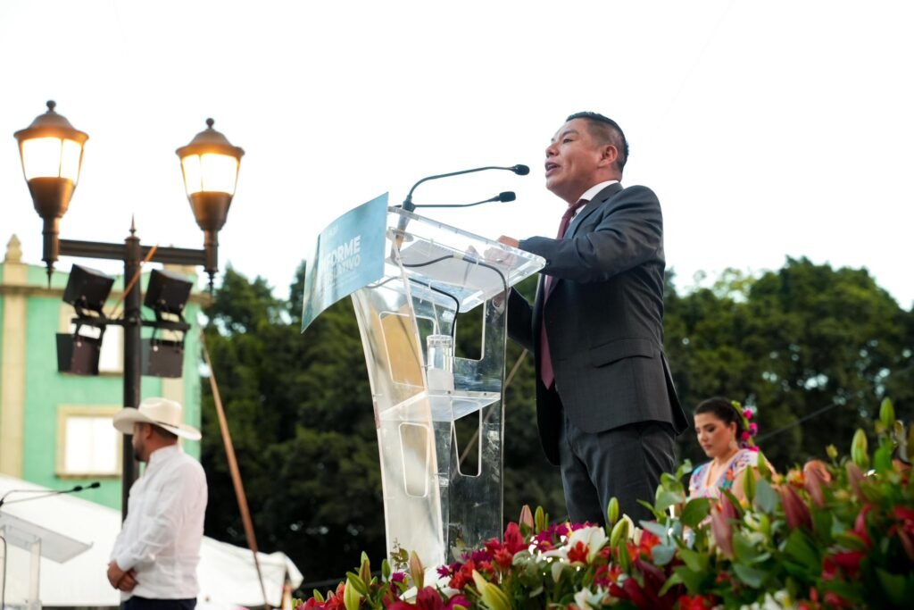 En un acto histórico, ante miles de oaxaqueñas y oaxaqueños, el presidente de la Junta de Coordinación Política (Jucopo) y coordinador del Grupo Parlamentario de Morena en la LXVI Legislatura Constitucional, diputado Benjamín Viveros Montalvo rindió su Primer Informe de Trabajo Legislativo en la Alameda de León, en donde reafirmó su compromiso de continuar trabajando para consolidar el Segundo Piso del Humanismo Mexicano.