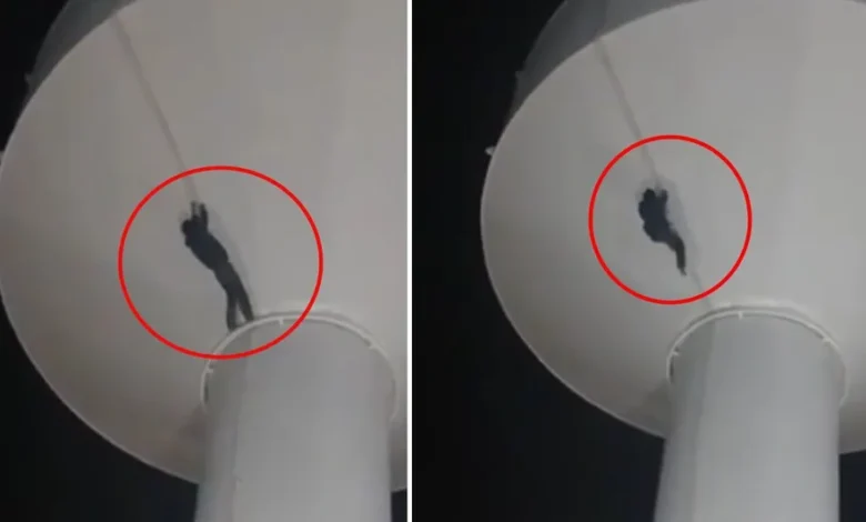Ante la mirada de la mujer encargada de grabar los hechos y al parecer otras personas más, Marcelo no solo llegó hasta la parte más alta de la columna del tanque de agua, sino que además se valió de una especie de cuerda para rodear el contenedor y seguir escalando.