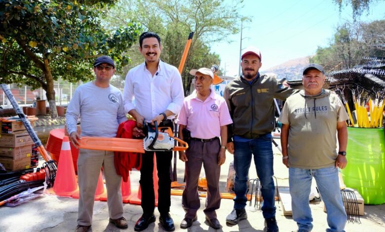 Oaxaca de Juárez, Oax., 11 de marzo de 2026.– Con el objetivo de fortalecer el mantenimiento y cuidado de los espacios públicos de la capital, el presidente municipal Ray Chagoya encabezó la entrega de herramientas y equipamiento al personal del área de Parques y Jardines de los Sindicatos 3 de Marzo y Autónomo.