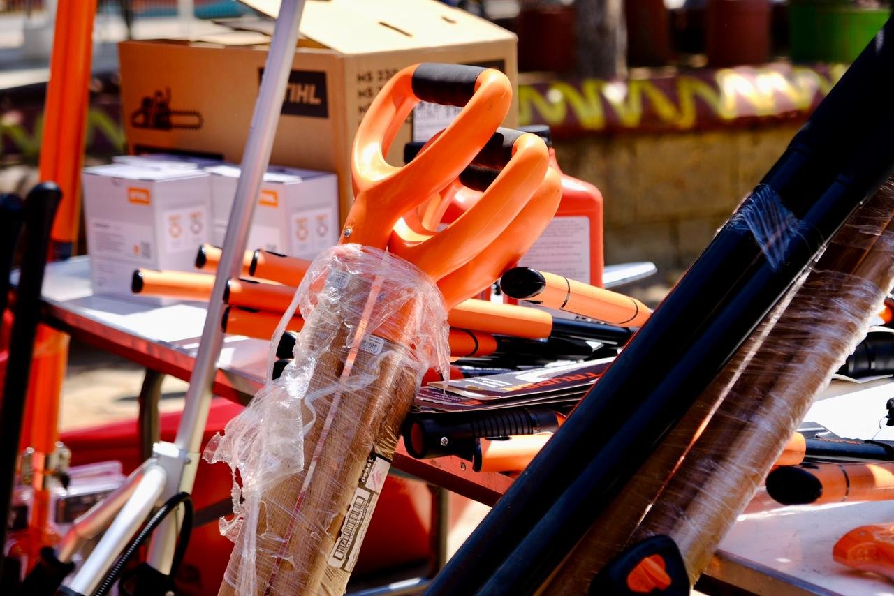 Como parte de esta entrega se distribuyeron herramientas manuales para labores de limpieza y mantenimiento de áreas verdes, entre ellas machetes, limas, barretones y carretillas, así como equipo para poda, motosierras, desbrozadoras, aceite para maquinaria, equipo de protección e insumos diversos que facilitan el trabajo de las cuadrillas.