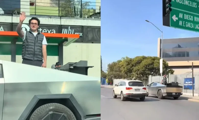 ¿Monterrey o IA? Captan a joven viajando parado con su asador en una Cybertruck de Tesla | VIDEO