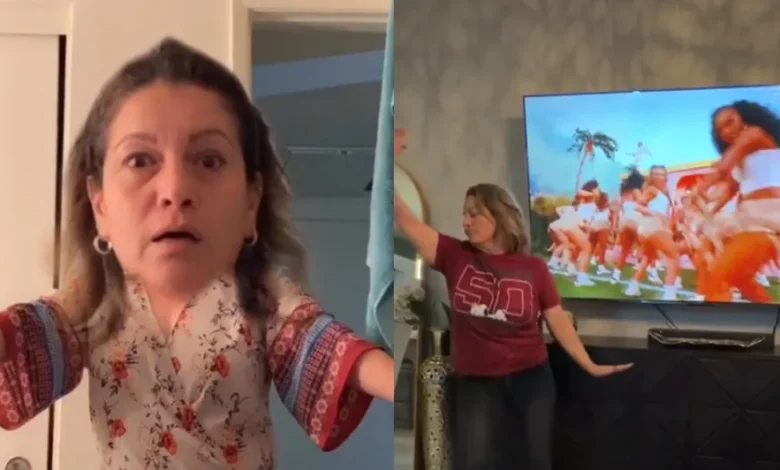 En su nueva aparición, la mujer viral aparece frente a un televisor bailando durante el show de medio tiempo de Bad Bunny en el Super Bowl, aunque en esta ocasión sin divertidos filtros.