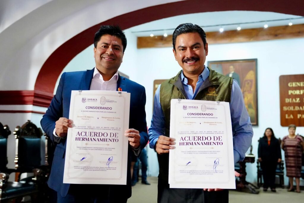 La Sesión de Cabildo también fue marco para la ratificación del hermanamiento entre Oaxaca de Juárez y Huajuapan de León, ceremonia que contó con la presencia del presidente municipal huajuapeño, Luis de León Martínez Sánchez.