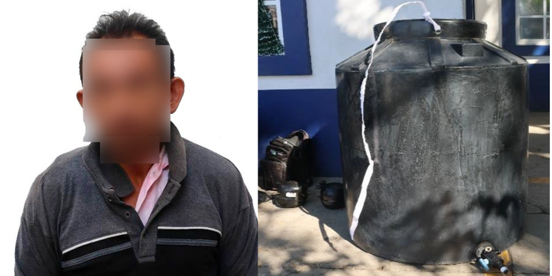 Al circular en la calle Berriozábal, frente a la escuela Francoise Dolto, cuyo edificio está asegurado por la Fiscalía General del Estado, observaron un tinaco grande, color negro, frente al edificio, así como en ese momento, un sujeto saltó la barda para intentar huir.