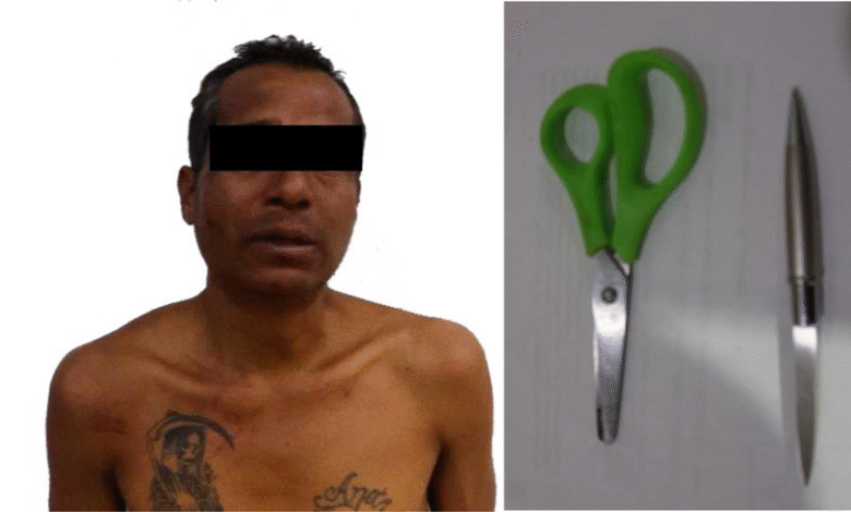 Ante el señalamiento, realizaron la inspección al sujeto, a quien le hallaron unas tijeras y un objeto metálico tipo punta, con el que presuntamente amagó a la mujer, por lo cual procedieron a su detención y dijo llamarse Luis A. P. C., de 42 años de edad.