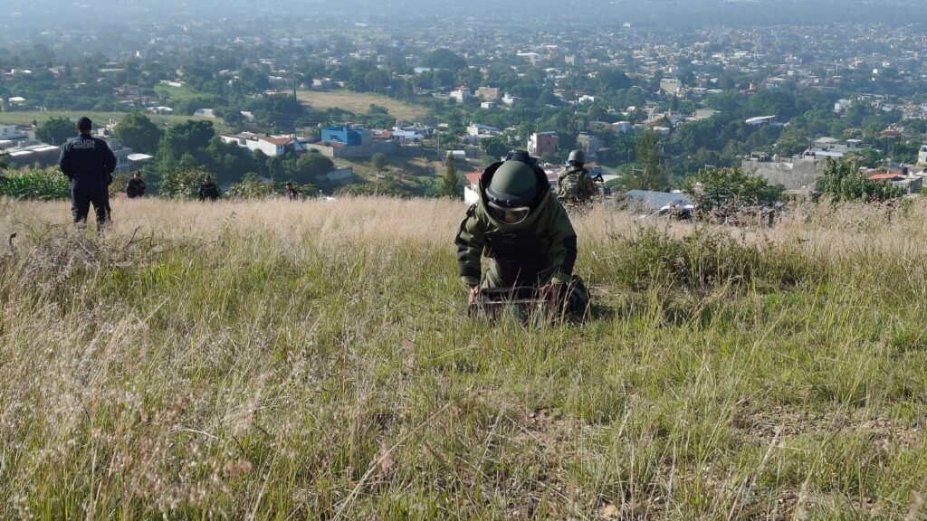 Minutos después arribó personal de Materiales de Guerra de la Defensa Nacional, quienes verificaron que se trataba de una granada de mortero y recomendaron mantener la zona bajo resguardo hasta contar con el equipo especializado para su manejo.