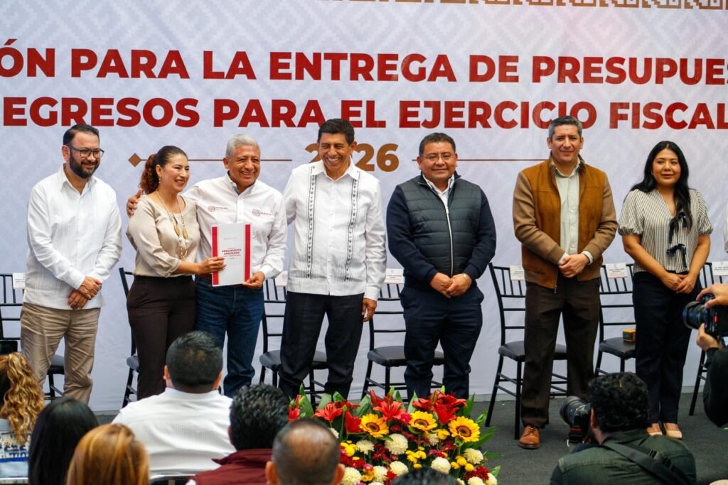 Oaxaca de Juárez, Oax. 22 de diciembre de 2025.- El Gobernador Salomón Jara Cruz encabezó la entrega a las dependencias gubernamentales, del presupuesto de egresos correspondiente al Ejercicio Fiscal 2026; instrumento que orientará la ejecución del gasto público durante el próximo año, para que se traduzca en resultados concretos en beneficio de la población oaxaqueña.