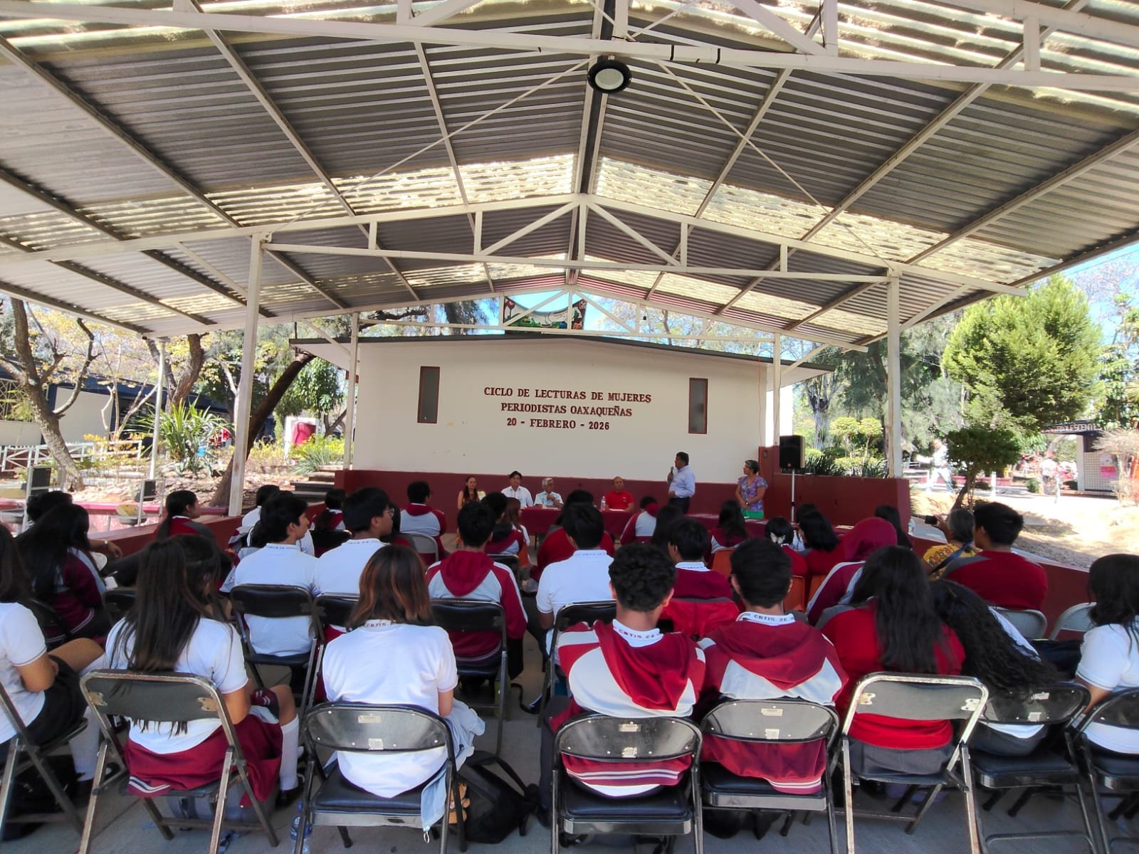 Al evento, asistieron la coordinadora administrativa del Conversatorio de Periodismo, Isabel Bautista Aguilar; el Director de la Hemeroteca Pública de Oaxaca “Nestor Sánchez Hernández”, Kevin Gonzalo Bautista López y subdirector académico, Juan Manuel López Ramírez del CBTIS No. 26 de San Felipe del Agua.