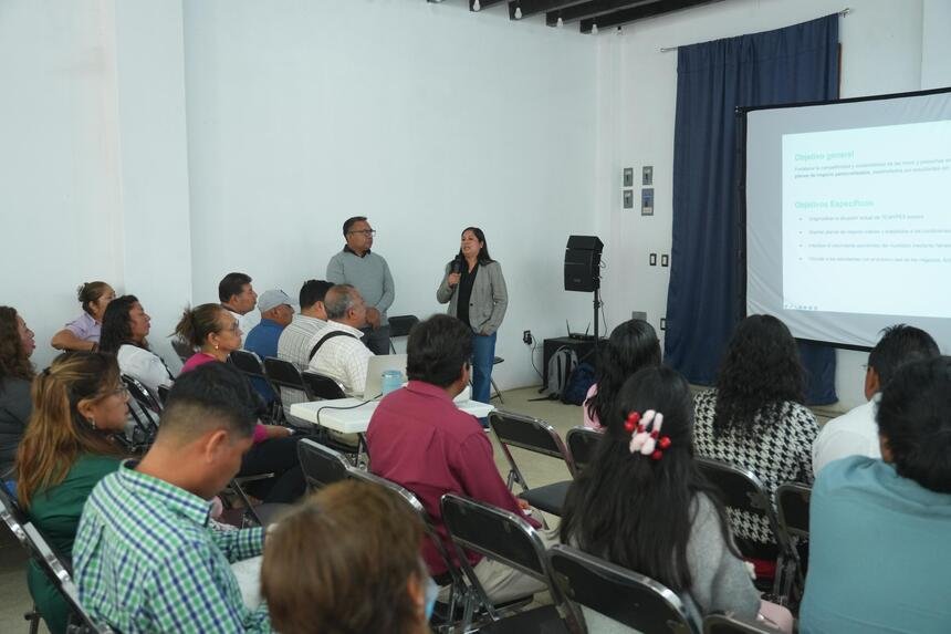 La reunión informativa tuvo lugar en el Ayuntamiento y contó con la participación de autoridades municipales, encabezadas por la presidenta, Nancy Benítez Zárate; representantes educativos de la Universidad Tecnológica de los Valles Centrales de Oaxaca (UTVCO), y emprendedores locales.