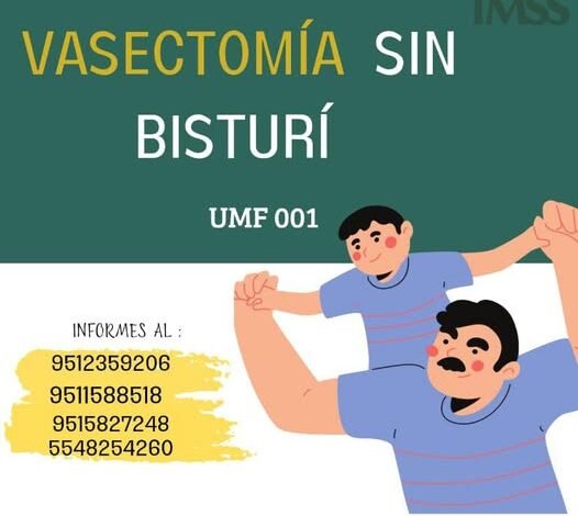 Con el objetivo de promover la planificación familiar y brindar opciones seguras y efectivas de anticoncepción masculina, el Instituto Mexicano del Seguro Social (IMSS) en Oaxaca llevará a cabo una Jornada de Vasectomía sin Bisturí en la Unidad de Medicina Familiar (UMF) No. 1.