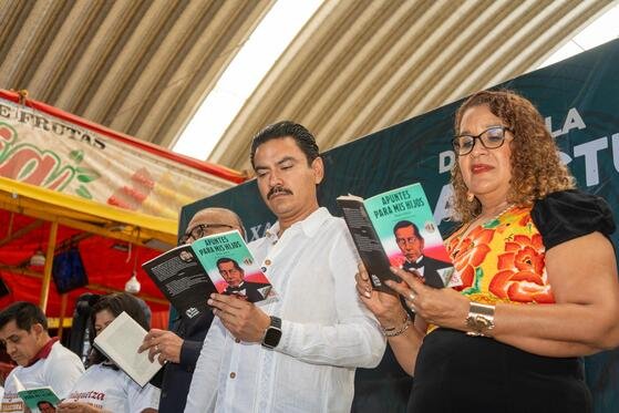 Desde la Nave 4 del área de bodegas de fruta de la Central de Abasto —uno de los puntos más representativos y concurridos de la capital—, el edil compartió la lectura de Apuntes para mis hijos, del Benemérito Benito Juárez, acompañado de vecinitas y vecinitos. El texto, dijo, refleja la importancia del esfuerzo, la educación y el compromiso con el bienestar colectivo.