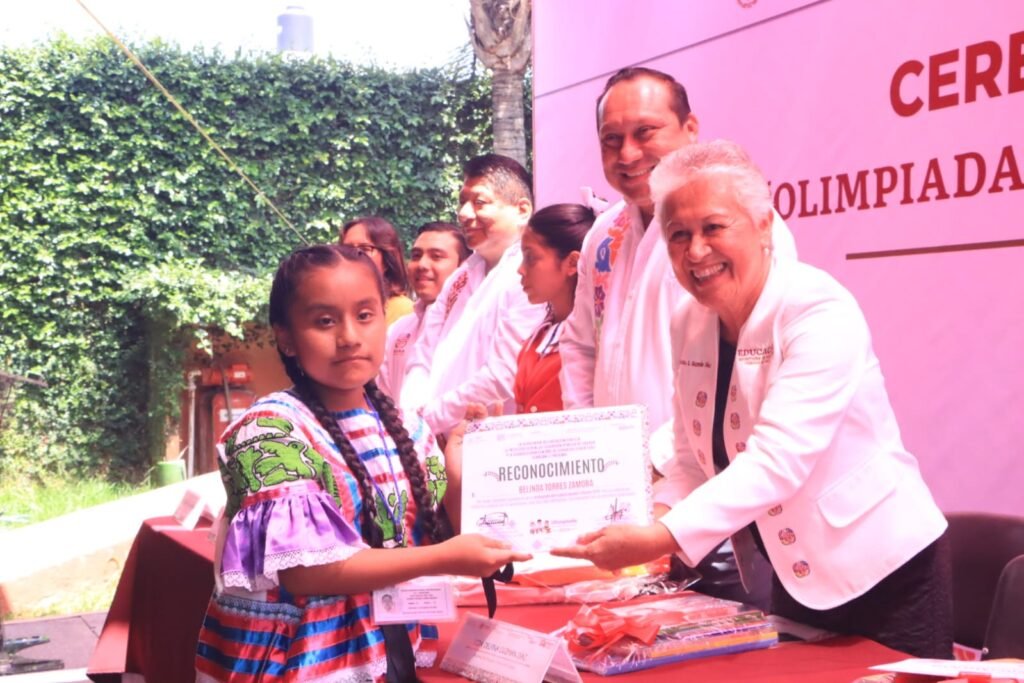 De manera especial, se homenajeó a la estudiante Lia Renata Ruiz Ocaña, quien obtuvo el primer lugar estatal, destacándose entre 348 participantes de escuelas urbanas, rurales, privadas e indígenas que concursaron y dieron lo mejor de sí en esta importante jornada académica.