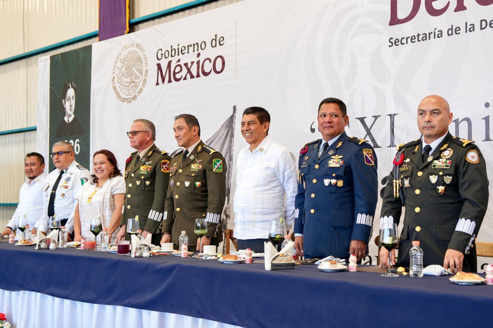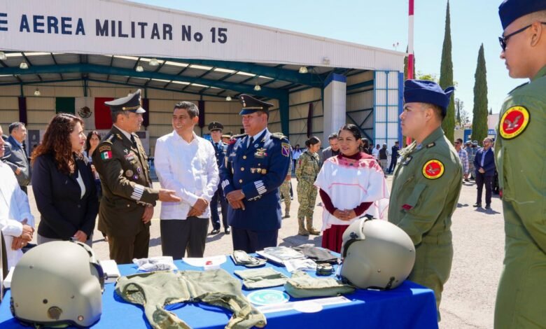 “Nos sentimos orgullosas y orgullosos todos los mexicanos de tener instituciones que desempeñan una labor y función muy especial para nuestro país”, afirmó en la Base Aérea Militar número 15 ubicada en San Juan Bautista la Raya, Santa Cruz Xoxocotlán.