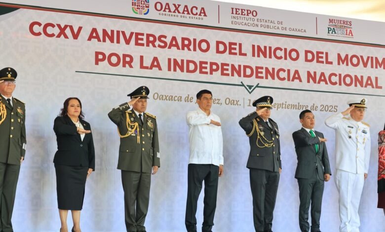 Oaxaca de Juárez, Oax. 16 de septiembre de 2025.- Al encabezar la ceremonia del 215 Aniversario del Inicio del Movimiento por la Independencia Nacional, el Gobernador Salomón Jara Cruz resaltó los valores de la libertad y la justicia.