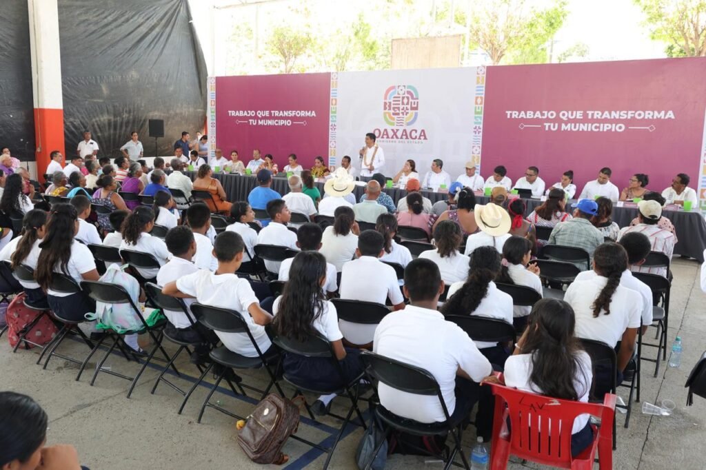 - El plantel 153 del Instituto de Estudios de Bachillerato del Estado de Oaxaca (IEBO) será respaldado con 10 computadoras, lote de mobiliario y la construcción de sanitarios; a la primaria “Melchor Ocampo” se le apoyará para un techado.