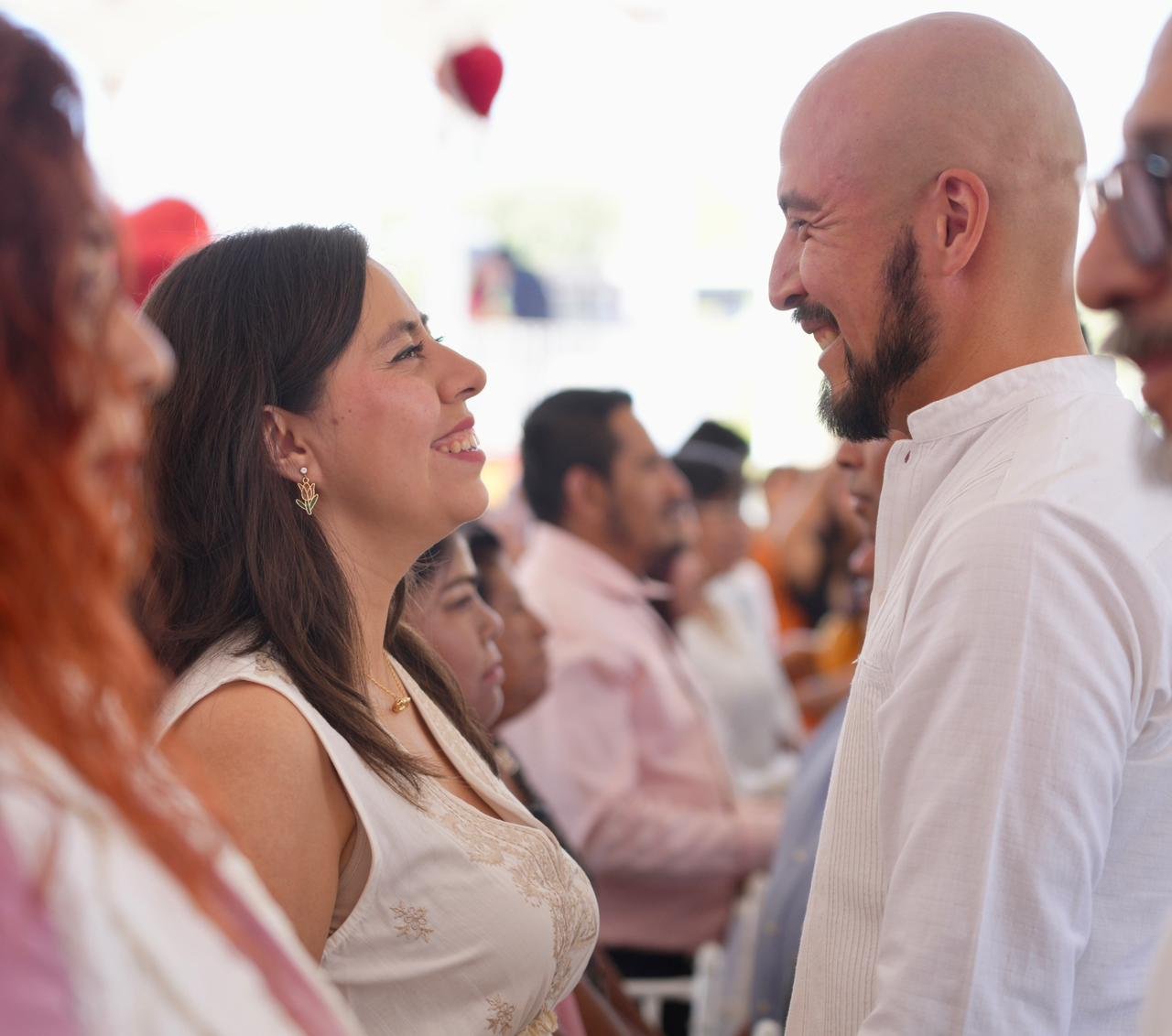 Durante la ceremonia, la presidenta municipal, Nancy Benítez Zárate, destacó que estas uniones representan un compromiso de vida: “Hoy celebramos el amor y la esperanza de sueños compartidos; el matrimonio es la promesa de caminar juntos y construir un hogar lleno de respeto”, señaló al ser testigo de este paso tan importante.